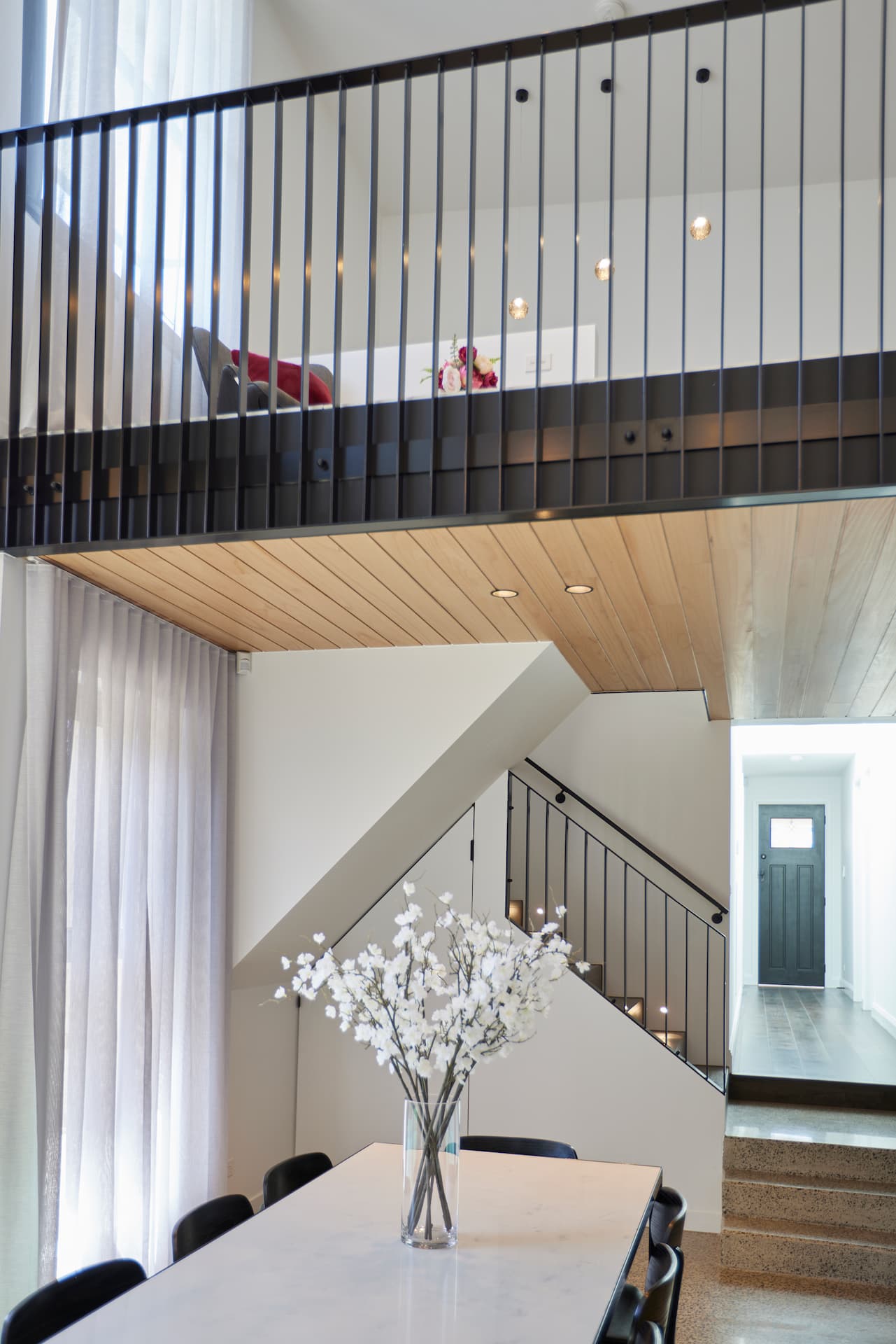 Extensive glazing required the use of multiple steel portal frames to maintain structural stability, particularly around the double-height living void. Tight site access posed construction challenges, demanding precise coordination to manoeuvre and install structural elements within constrained areas.